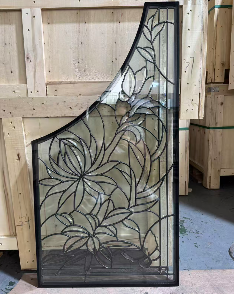 Chez Inlaid Glass, nous comprenons l'importance de la personnalisation. C'est pourquoi nous offrons une large gamme d'options de personnalisation pour notre verre d'entrée.et des dessins pour compléter parfaitement votre décor intérieurNous offrons également différentes finitions, y compris les finitions polissées, mates et texturées, en fonction de vos préférences.